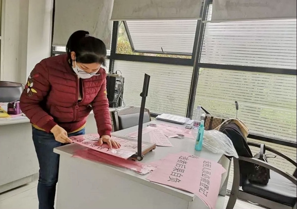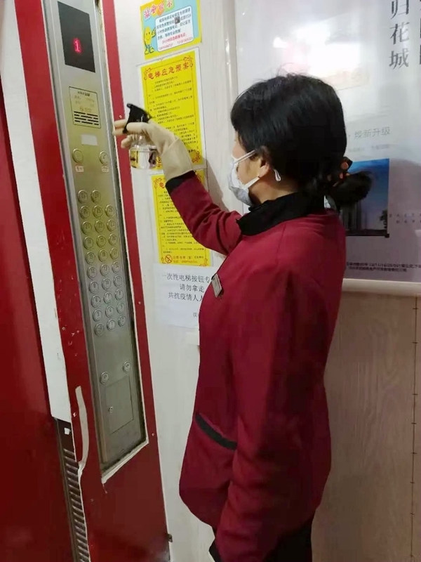 春節(jié)期間,鄭惠蘭每天落實(shí)各衛(wèi)生死角、電梯,大堂、消防樓梯以及垃圾桶的消毒工作。每天消毒兩次以上,拍照記錄并上傳朋友圈。她還安排了專人在前臺(tái)整理打印各種疫情防控通知與提示,填制各種文檔表格,并上傳給相關(guān)部門。特殊時(shí)期,雖然通知多且繁雜,但她仍不敢懈怠,認(rèn)真工作。