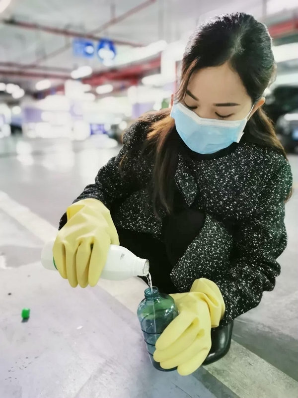 在這段最關(guān)鍵的疫情防控時(shí)間里,小區(qū)每一個(gè)角落都幾乎有她的身影出現(xiàn)。每天巡查小區(qū)衛(wèi)生整潔、設(shè)施安全情況。疫情期間更是帶領(lǐng)著大家進(jìn)行一次次貼膜、一次次的消毒工作。