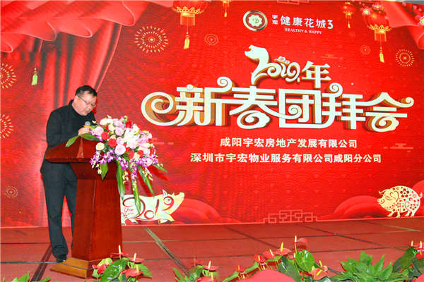 2019年1月25日,咸陽宇宏房地產發展有限公司、深圳市宇宏物業服務有限公司咸陽分公司2019年新春團拜會在咸陽海泉灣維景酒店隆重舉行,集團董事長吳晨鑫先生、集團總裁莫凡先生、集團總裁助理楊海燕女士、集團設計研發部總經理袁靖先生、咸陽宇宏地產、咸陽宇宏物業全體員工及協作單位代表共190余人歡聚一堂,共迎新春佳節。